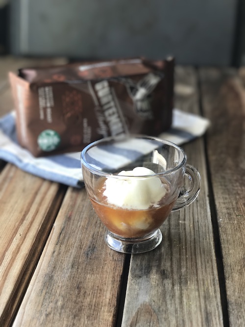 Ο affogato είναι ο αγαπημένος μου τρόπος να συδυάσω τον κρύο καλοκαιρινό καφέ με παγωτό! Για αυτό το ρόφημα καφέ, επέλεξα τον Starbucks Guatemala Antigua, έναν καφέ μέτριας οξύτητας και σώματος, εκλεπτυσμένο και πολύπλοκο, με πολύ διακριτική υφή σκόνης κακάο και νότες ήπιων μπαχαρικών και κίτρου.