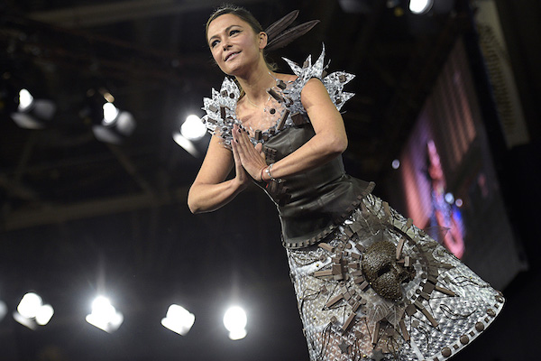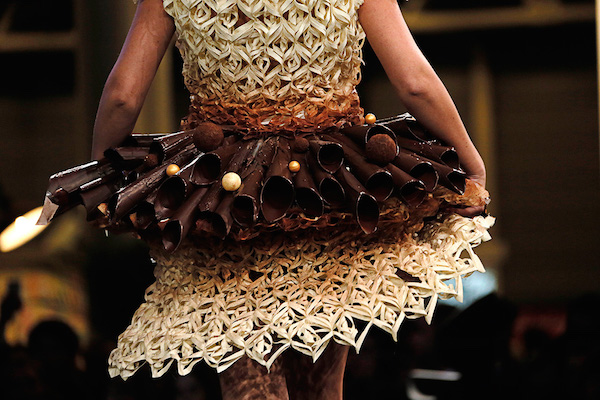 Το έχουμε ήδη προβλέψει ότι το φαγητό είναι η νέα τάση στη μόδα. Και δεν είναι απλά η νέα τάση, αλλά και η πιο γλυκιά και λαχταριστή. Στο Παρίσι, στην 20η έκθεση με αφιέρωμα τη σοκολάτα, το περίφημο Salon du Chocolat, διάσημοι οίκοι υψηλής ραπτικής παρουσίασαν εντυπωσιακές δημιουργίες φτιαγμένες… από σοκολάτα. Καταξιωμένοι, αλλά και νέοι ταλαντούχοι σχεδιαστές συνεργάστηκαν με τους καλύτερους Γάλλους σοκολατοποιούς και το αποτέλεσμα ήταν πραγματικά καλαίσθητο, εντυπωσιακό και γλυκό. Μοντέλα, ηθοποιοί, δημοσιογράφοι, παρουσιάστριες και αθλήτριες από τη Γαλλία επιστρατεύτηκαν για να παρουσιάσουν στην πασαρέλα τις σοκολατένιες δημιουργίες που είχαν φιλοτεχνηθεί με τέτοια ακρίβεια και λεπτομέρεια ώστε να δίνουν την εντύπωση ότι πρόκειται για αληθινά φορέματα και κουστούμια. Βλέποντας τις φωτογραφίες, πραγματικά δεν μπορούσαμε να αποφασίσουμε αν τις συγκεκριμένες δημιουργίες θα θέλαμε να τις φορέσουμε ή να τις γευτούμε.