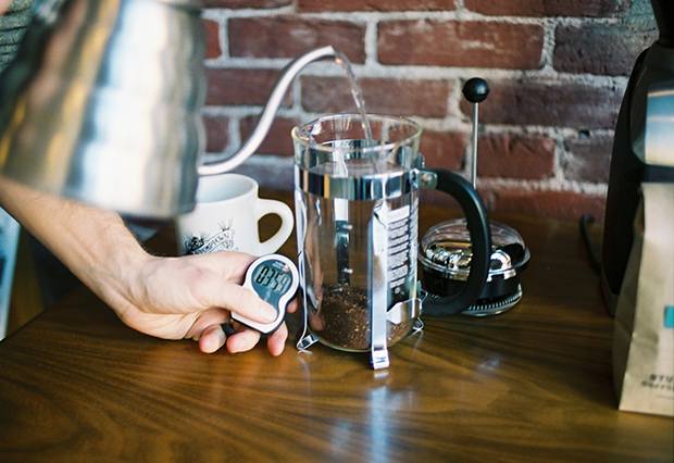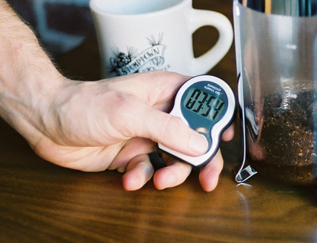 4. Ρυθμίζουμε τον χρονοδιακόπτη στα 4 λεπτά και περιμένουμε 30 δευτερόλεπτα. Είναι πολύ σημαντικός ο χρόνος για να πετύχουμε την τέλεια ποιότητα γαλλικού καφέ.